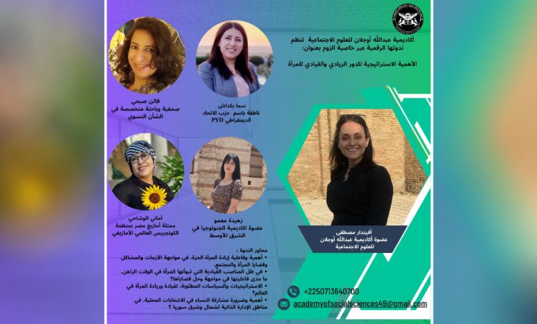نظمت أكاديمية عبد الله أوجلان للعلوم الاجتماعية ندوة رقمية عبر خاصية الزوم، في الثاني من تموز/يوليو الفائت، تحت عنوان “الأهمية الاستراتيجية للدور الريادي والقيادي للمرأة”.